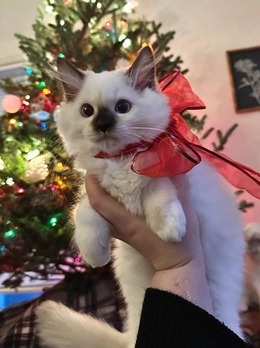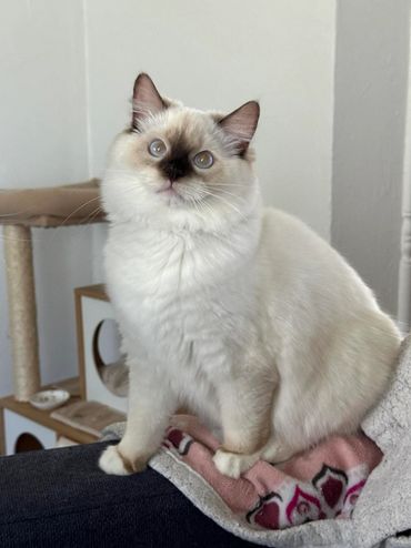 Cocoa is incredibly sweet and silly - she loves playing even as an adult, she has a very bright eyed and curious view of the world. She is very sweet and outgoing, and is one of our more talkative girls!! We chose her not only for her rare color and wonderful physical structure, but because she really has that Ragdoll sweetness and relaxed nature that we love to see. Cocoa is from our queen Willow's third litter of kittens, and is our first 'homegrown' girl to have had a litter of her own! Her kittens are adorable - like I might be a little biased hahaha, but I was and am so happy with the extremely sweet temperaments she passed on to her kittens! There is something very 'silly' and fun about Cocoa that is hard to describe, she is just a joy to live with and has been a relaxed, wonderful mom with her kiddos.