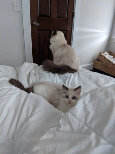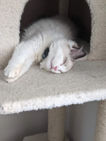 Our King came to us from Rapture Ragdolls in Florida, bringing with him their Championship bloodlines with minimal to no line breeding.