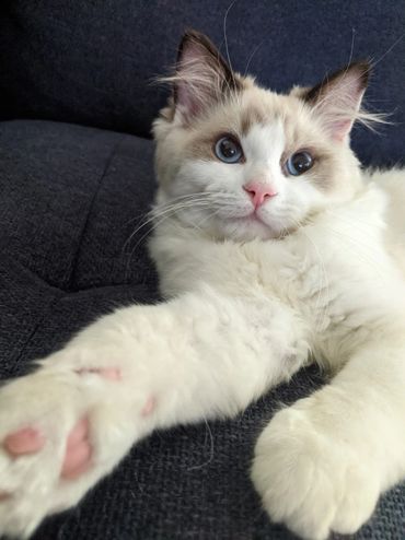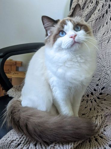 Spirit is truly the sweetest cat we have here at Mittenstar Ragdolls. We really emphasized finding a stud that not only had the correct physical confirmation for the Ragdoll standard, but also the temperament!